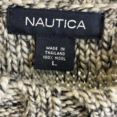 Keywords: Nautica sweater, wool blend, striped pattern, crew neck, pullover, menswear, casual, warm, winter, fall fashion, layering, classic style, weekend wear