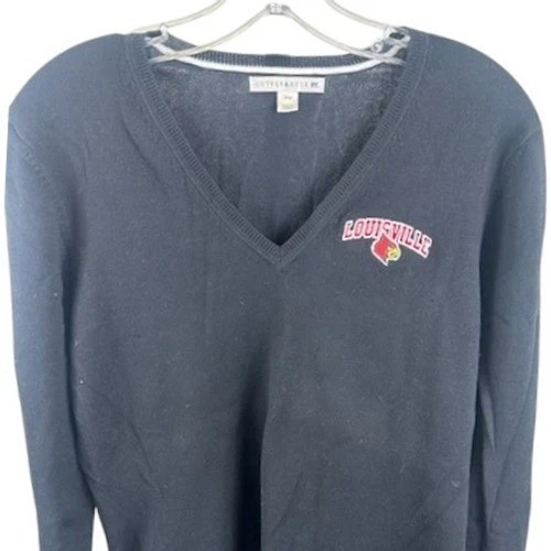 Classic collegiate style, a Cutter & Buck Louisville Cardinals sweater. This black, long-sleeved V-neck features the Cardinals logo embroidered on the chest, offering a subtle nod to your team spirit. Crafted for comfort and style, this sweater is perfect for layering or wearing on its own. Its versatile design complements both casual and semi-formal looks. Ideal for game days, alumni events, or representing your school pride around campus.