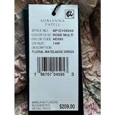 Be the first to review “New Adrianna Papell Floral Matelasse Dress Rose Multi Ruched Cocktail Size 14W”