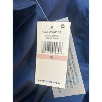 Keywords: Alex Evenings, navy dress, cocktail dress, sheath dress, floral dress, flared sleeves, formal dress, party dress, wedding guest dress, size 10, dress, evening wear, occasion dress, classic dress