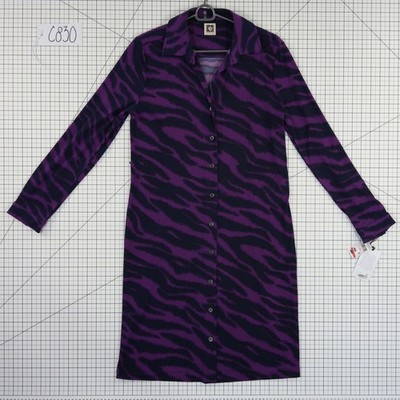 New Anne Klein Dress Women Size 10 Purple Black Tiger Stripe Shirt Long Sleeves