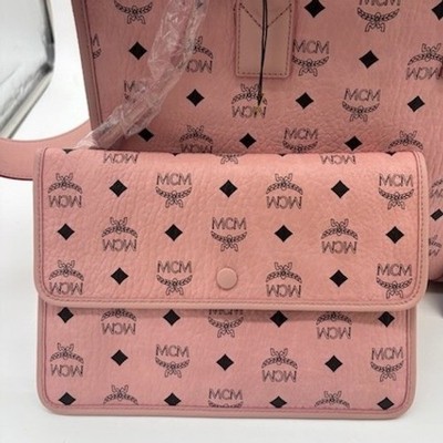 Keywords: MCM tote, MCM pink bag, Visetos canvas, Designer tote bag, Luxury handbag, Pink tote bag, Shoulder bag, MCM handbag, Coated canvas tote, MCM, Women's tote, Pink purse, Logo tote, Travel tote