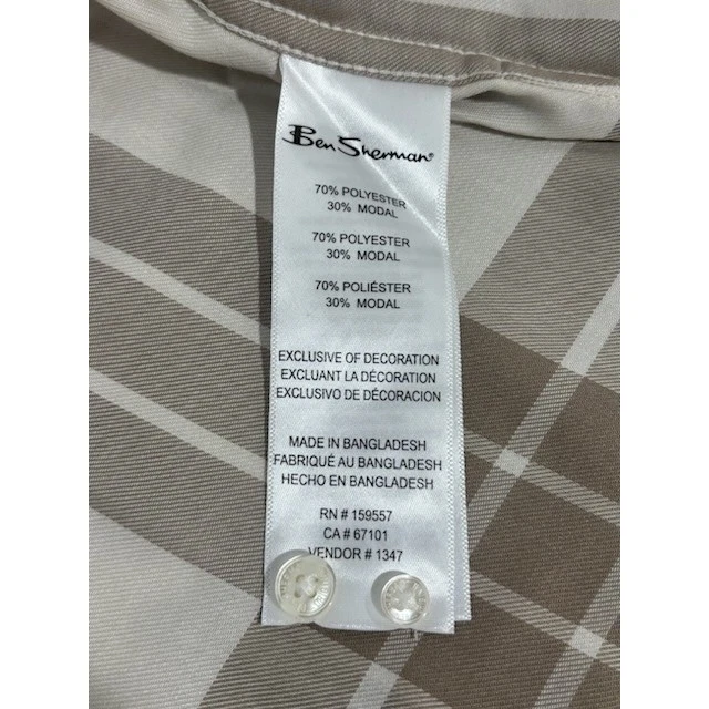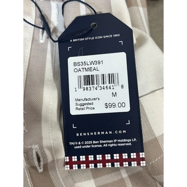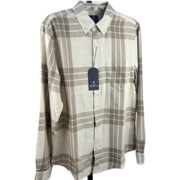 A Ben Sherman men’s long sleeve button down shirt in oatmeal with a classic plaid pattern. This shirt features a chest pocket and a traditional button-down collar. Its timeless design makes it suitable for casual outings, office wear, or layering during cooler weather.