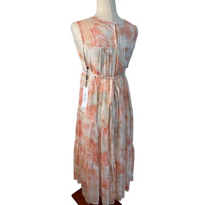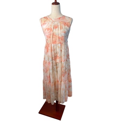 Keywords: Calvin Klein dress, maxi dress, floral dress, tiered dress, sleeveless dress, summer dress, women's dress, size 10, pink floral, white floral, garden party dress, wedding guest dress, boho dress, bohemian dress