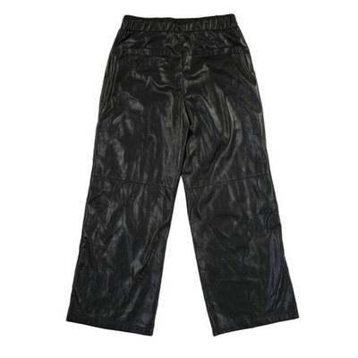 New with tags. Jordan Faux Leather Wide Leg Pants offer a sophisticated yet edgy aesthetic with a smooth polyurethane finish. These pull-on trousers feature a comfortable elastic waistband with an adjustable drawstring and a relaxed, wide-leg silhouette. Designed with functional side pockets and clean back welt pockets, they provide a polished look suitable for both casual and elevated ensembles. The textured vegan leather material provides a premium feel while the interior lining ensures a smooth fit.
