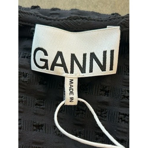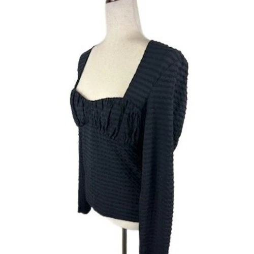 New GANNI Black Stretch Seer Square Neck Long Sleeve Fitted Top Size 38 6 M $295