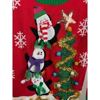Keywords: Ugly Christmas Sweater, Holiday Knitwear, Penguin Sweater, Christmas Tree Sweater, Festive Apparel, Winter Fashion, Novelty Sweater, Party Outfit, Acrylic Blend, Plus Size Fashion, Seasonal Clothing, Quirky Design