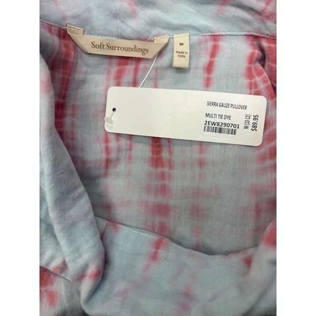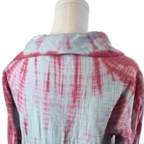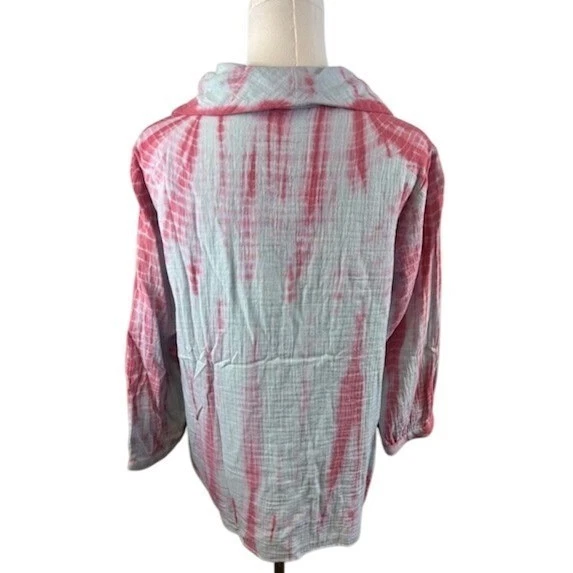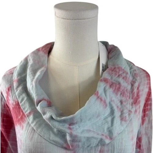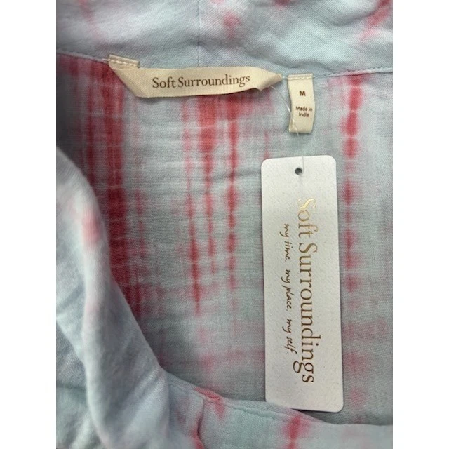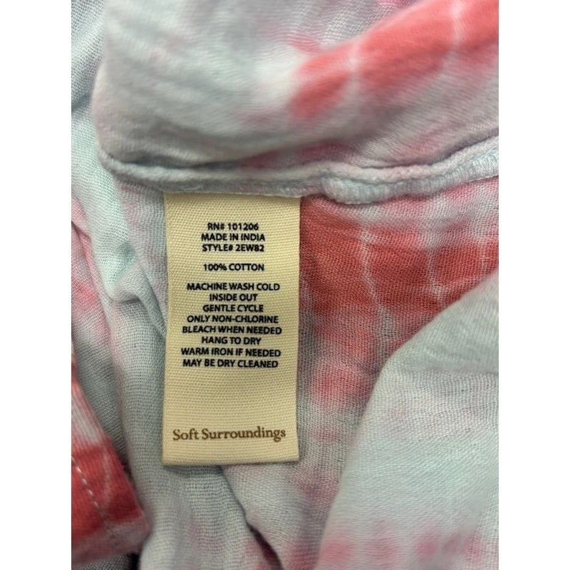 Effortless style arrives with this Soft Surroundings Sierra Gauze Pullover. This top features a unique multi tie-dye pattern in shades of light blue and red, creating a soft, dreamy aesthetic. The relaxed cowl neck adds a touch of sophistication, while the lightweight gauze fabric ensures all-day comfort. The 3/4 sleeves make it perfect for transitioning between seasons. This top is ideal for a casual brunch with friends, a relaxing weekend getaway, or a stylish everyday look.