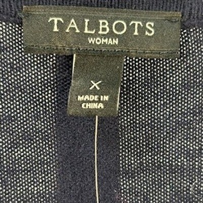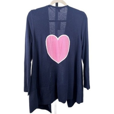 New with tags! This Talbots Woman open front cardigan sweater measures 32 inches in length, and has a sleeve length of 24 inches. This lightweight layering piece features a charming large pink heart intarsia graphic on the back with a delicate white border. Designed with a relaxed drape, long sleeves, and a comfortable rayon-blend fabric, it offers a versatile look for casual or smart-casual wear. Brand new with tags.