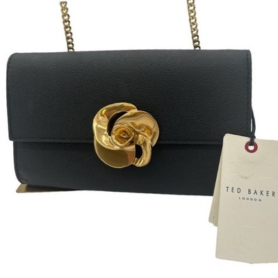 Keywords: Ted Baker, Crossbody Bag, Chain Strap, Black Purse, Gold Hardware, Designer Bag, Evening Bag, Flap Bag, Party Bag, Small Bag, Luxury Handbag, WOC