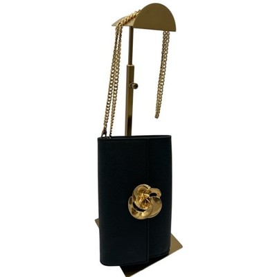 Capture attention with this chic black wallet-on-chain crossbody bag. The exquisite gold-tone flower embellishment adds a touch of glamour, making it the perfect statement piece. The elegant chain strap allows for versatile wear, transitioning effortlessly from a shoulder bag to a crossbody. The sleek silhouette ensures it holds all your essentials without compromising on style, and the flap closure keeps your items secure. Ideal for evenings out, special occasions, or adding a sophisticated touch to your everyday ensemble.
