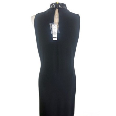 Keywords: White House Black Market, dress, sleeveless, embellished, black dress, party dress, cocktail dress, high neck, sheath dress, rhinestone, glam, evening wear, occasion dress, midi dress, formal dress