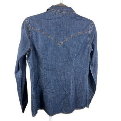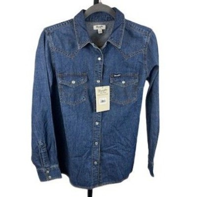Keywords: Wrangler, Retro, Denim Shirt, Western Shirt, Womens Shirt, Blue Shirt, Long Sleeve, Button Up, Casual Shirt, Cowgirl, Small, S, Denim Top