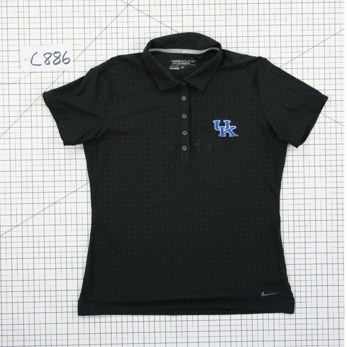 Nike Golf Tour Performance Kentucky Wildcats polo shirt provides a sleek athletic look with its moisture-wicking Dri-FIT technology. This black short-sleeve top features a subtle all-over tonal dot pattern and a refined five-button placket. The iconic UK logo is embroidered on the chest in vibrant blue and white, while the signature Nike swoosh appears at the lower hem. Designed for comfort and performance on or off the course, this piece combines collegiate pride with high-quality sportswear engineering.