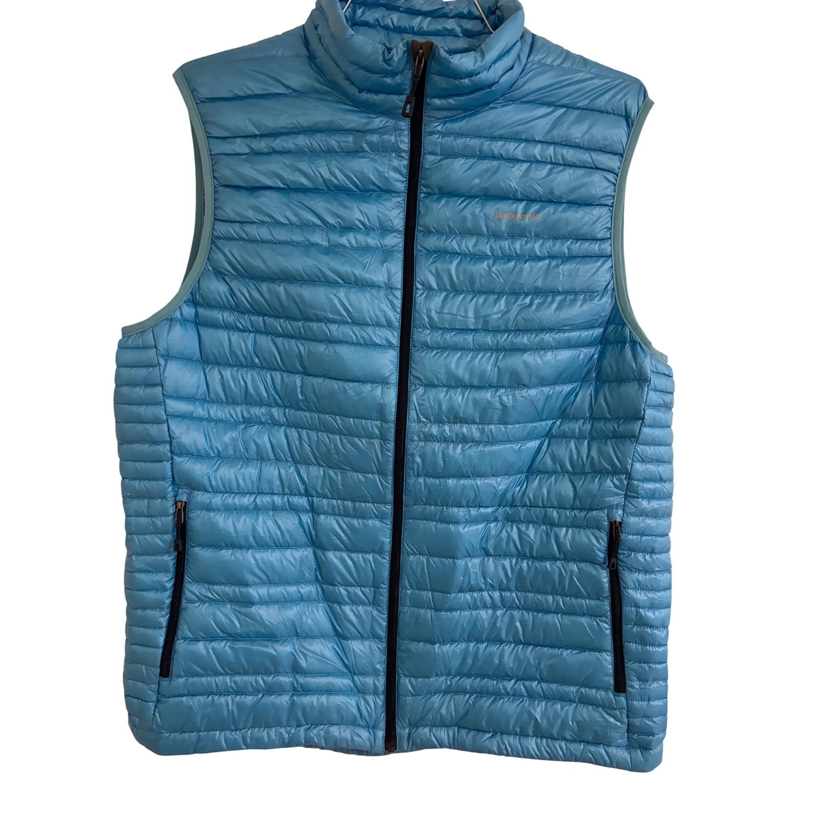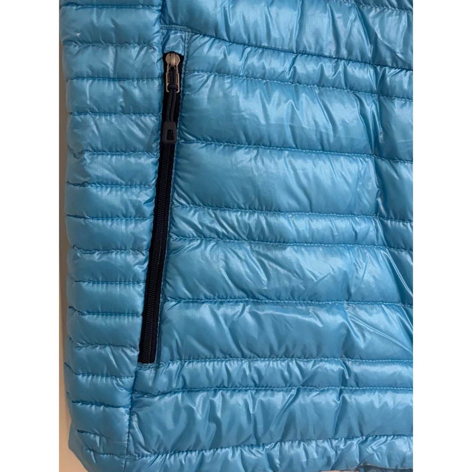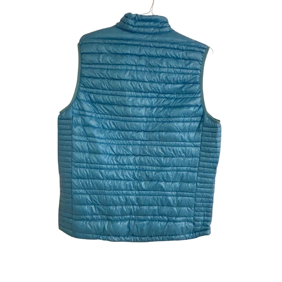 A striking turquoise blue puffer vest for women, a perfect layering piece for active lifestyles. This vest offers substantial warmth without the bulk, making it ideal for transitional weather. Its quilted construction and full-zip front provide both style and functionality, while the zippered opockets offer secure storage for essentials. This vest is an excellent choice for hiking, outdoor adventures, or casual everyday wear during cooler months.
