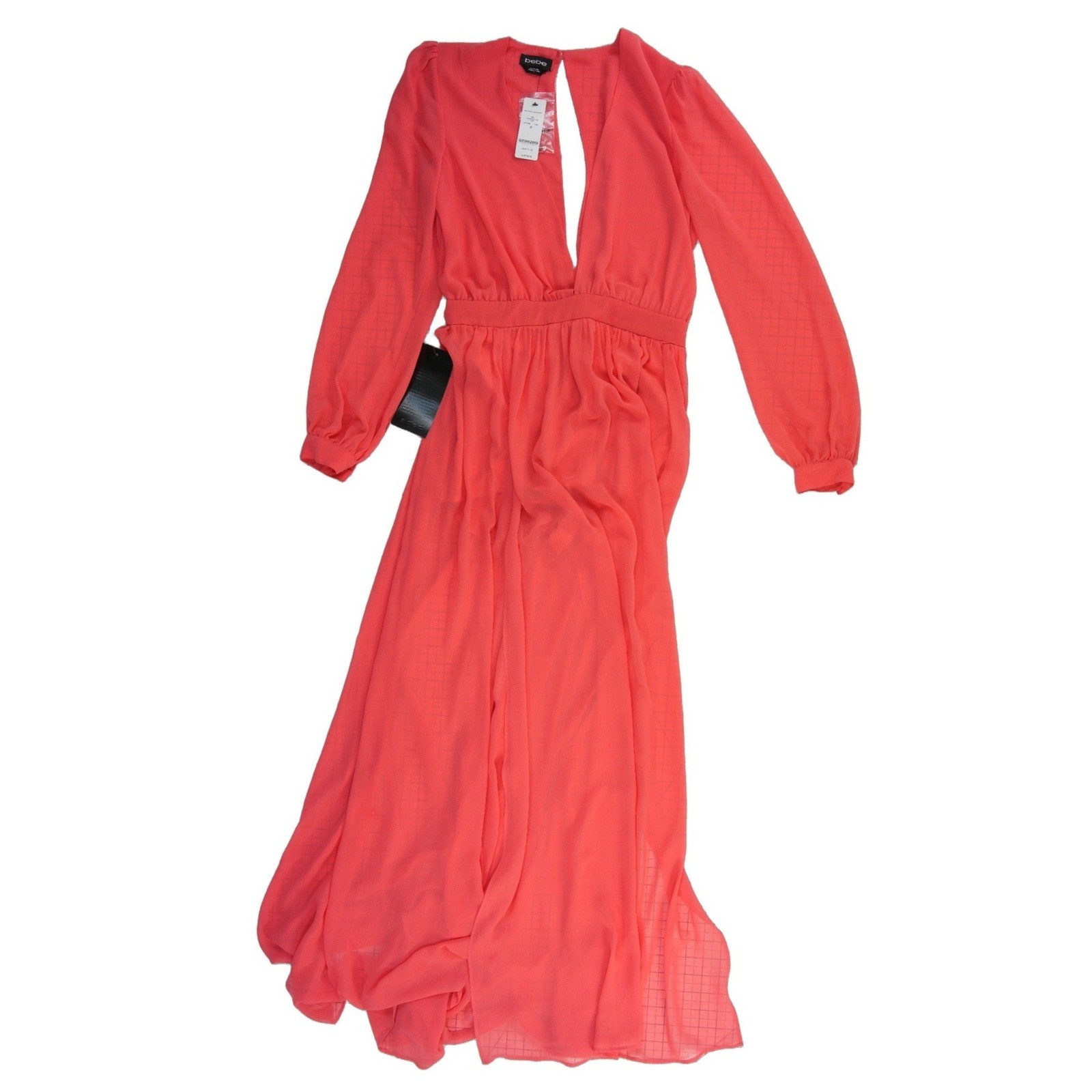 NWT Bebe Maxi Dress Women’s Size 8 Coral Long Sleeve Formal Gown Y2K