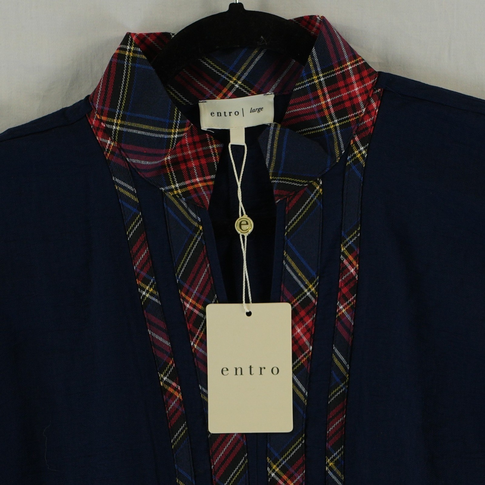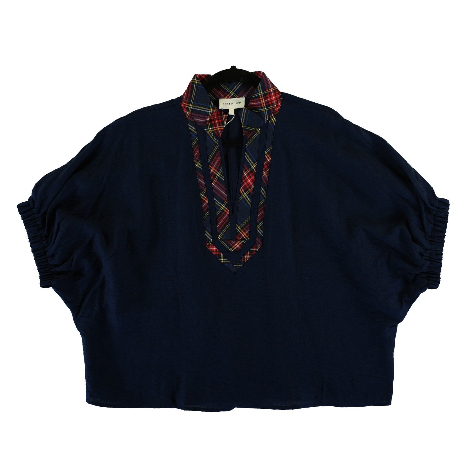 Be the first to review “NWT Entro Women’s Size Large Navy Plaid Trim Dolman V Neck Top Blouse”