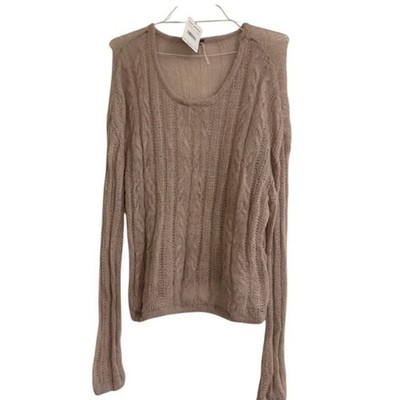 New with tags! Open-knit cable-stitched sweater features a delicate blend of alpaca and wool for a soft, lightweight feel. Designed with a relaxed scoop neck and long sleeves, this semi-sheer piece offers a beautiful drape in a versatile taupe “Frappucino” hue. The intricate pointelle and cable knit patterns provide a bohemian aesthetic perfect for layering over camisoles or dresses.