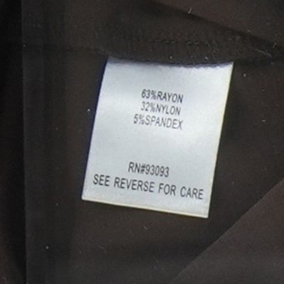 Material: 63% Rayon, 32% Nylon, 5% Spandex