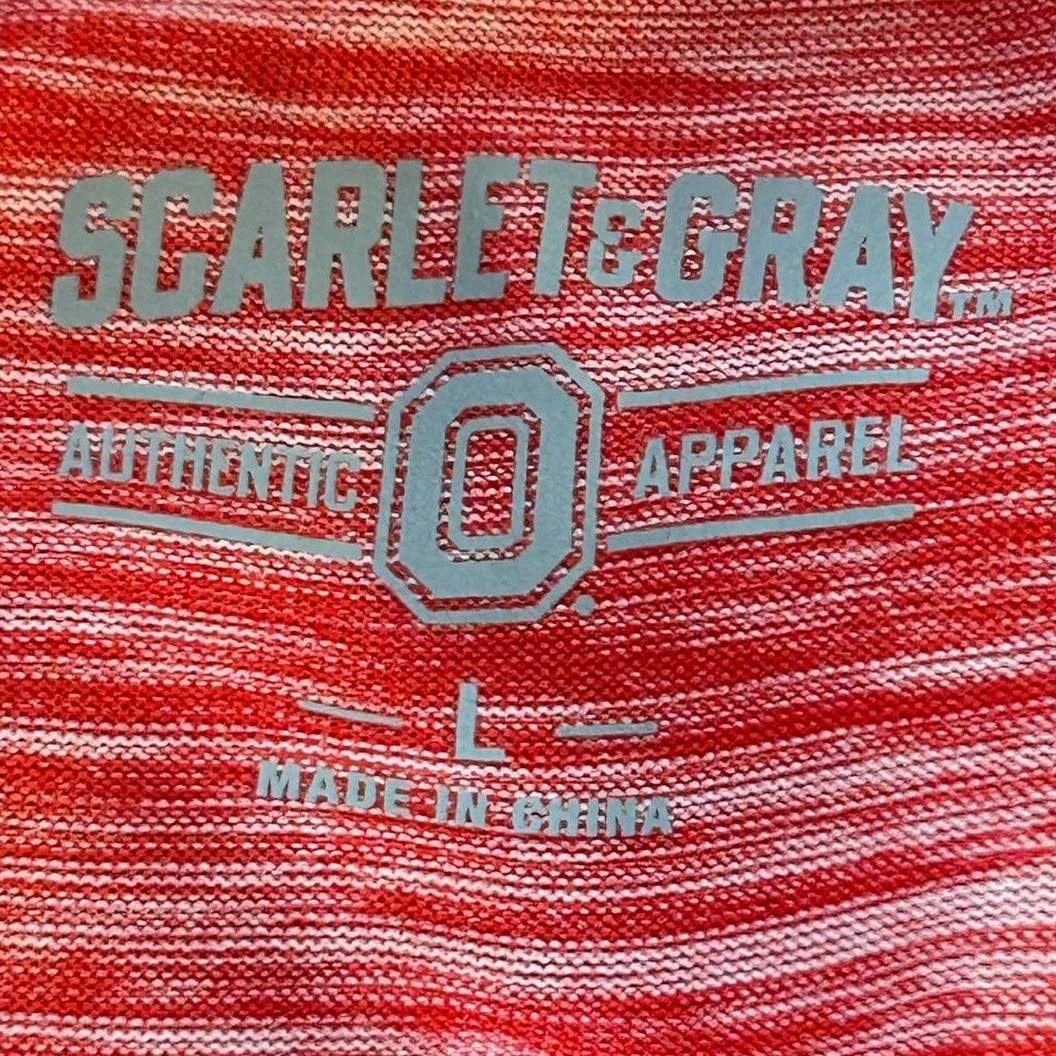 Ohio State Buckeyes quarter zip pullover shirt in a heathered scarlet and gray. This long sleeve top features the iconic Ohio State logo embroidered on the chest. Perfect for game days, casual wear, or showing your team spirit.