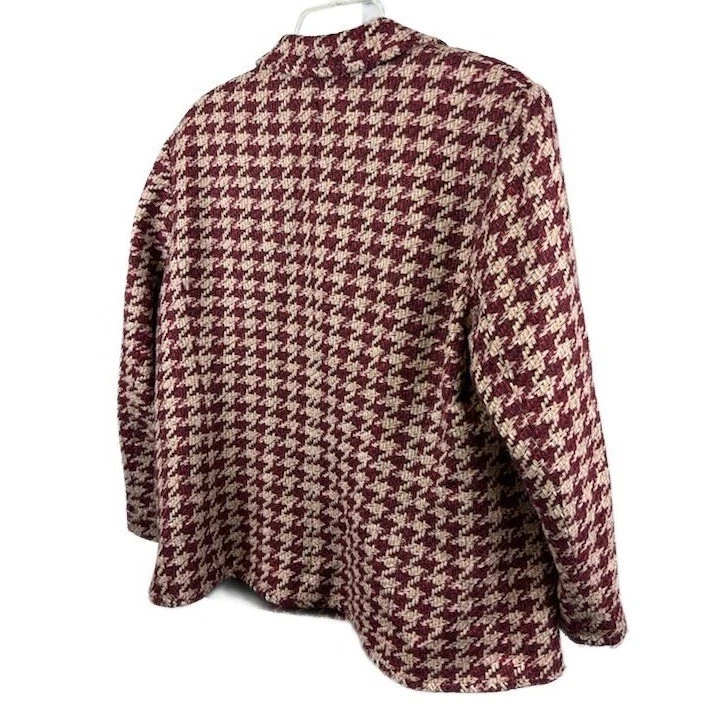 A classic houndstooth pattern blazer jacket. This tailored piece offers a sophisticated silhouette and a timeless aesthetic. Its versatile design makes it a perfect addition to your professional wardrobe or for a stylish evening out. Suitable for business meetings, dinners, or casual chic outings.