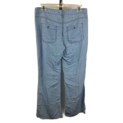 Women's light wash denim flare jeans from Pilcro and the Letterpress. Features a classic five-pocket design and a comfortable mid-rise fit. These versatile jeans are perfect for everyday wear, a casual brunch, or a relaxed evening out.