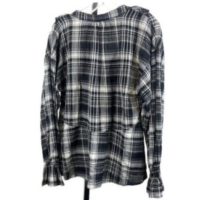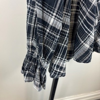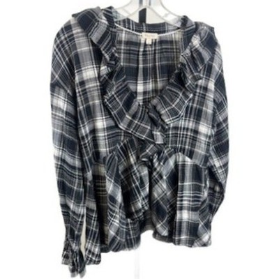 Keywords: PILCRO shirt, plaid shirt, ruffle shirt, V-neck shirt, long sleeve shirt, women's shirt, size S shirt, casual top, boho shirt, feminine blouse, everyday wear, weekend outfit, fall fashion, spring fashion, button up shirt