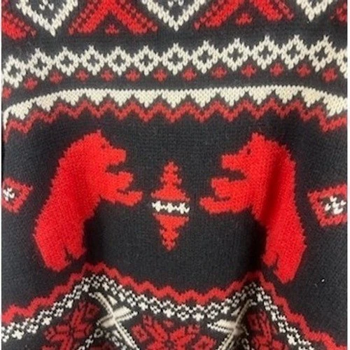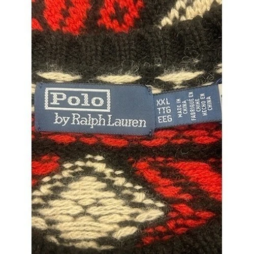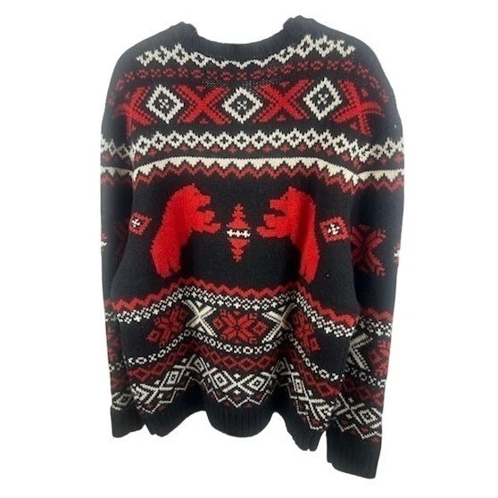 Command attention with this striking Polo Ralph Lauren sweater, a bold statement piece that blends classic Fair Isle patterns with a touch of rugged charm. The intricate knit showcases a captivating design featuring majestic polar bears, adding a unique and eye-catching element to the traditional aesthetic. The rich color palette enhances the sweater’s visual appeal, making it a versatile addition to your wardrobe. Imagine yourself fireside at a ski lodge or strolling through a festive winter market, wrapped in the warmth and style of this exceptional sweater.