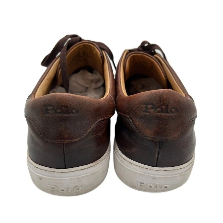 Polo Ralph Lauren Jermain II low top sneakers crafted from premium 100% leather uppers. These stylish sneakers feature a leather and fabric lining for comfort and a durable sole. The rich brown color and classic design make them perfect for casual outings or everyday wear.