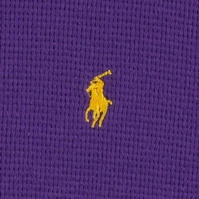 Polo Ralph Lauren sleepwear shirt features a classic thermal waffle knit construction in a vibrant purple hue. This long-sleeve crewneck top is accented with a contrasting yellow inner collar band and the iconic yellow pony embroidery on the chest. Crafted from breathable 100% cotton, it offers a relaxed fit perfect for lounging or layering during cooler months.