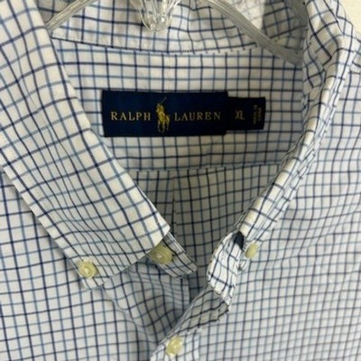 This classic fit button-down shirt from Polo Ralph Lauren measures 35″ in sleeve length, and 25″ pit-to-pit when laid flat. This long-sleeve shirt features a blue and white gingham plaid pattern. The iconic Polo Ralph Lauren pony logo is embroidered on the left chest. Perfect for casual outings, business casual settings, or layering.