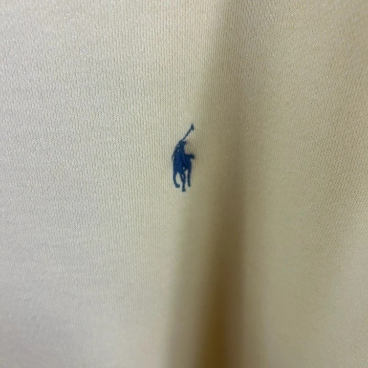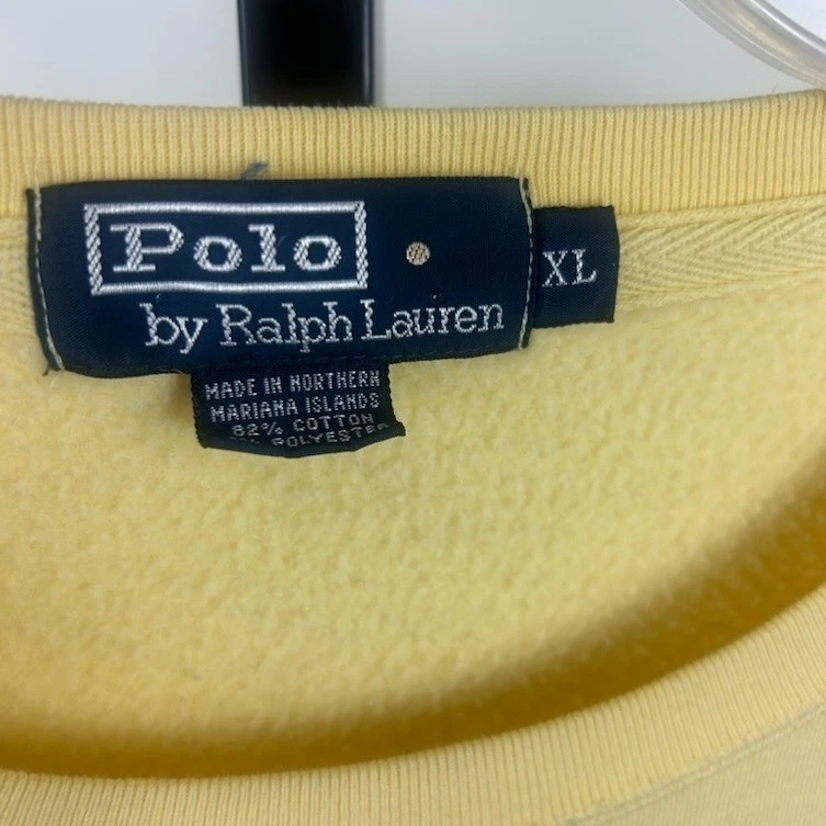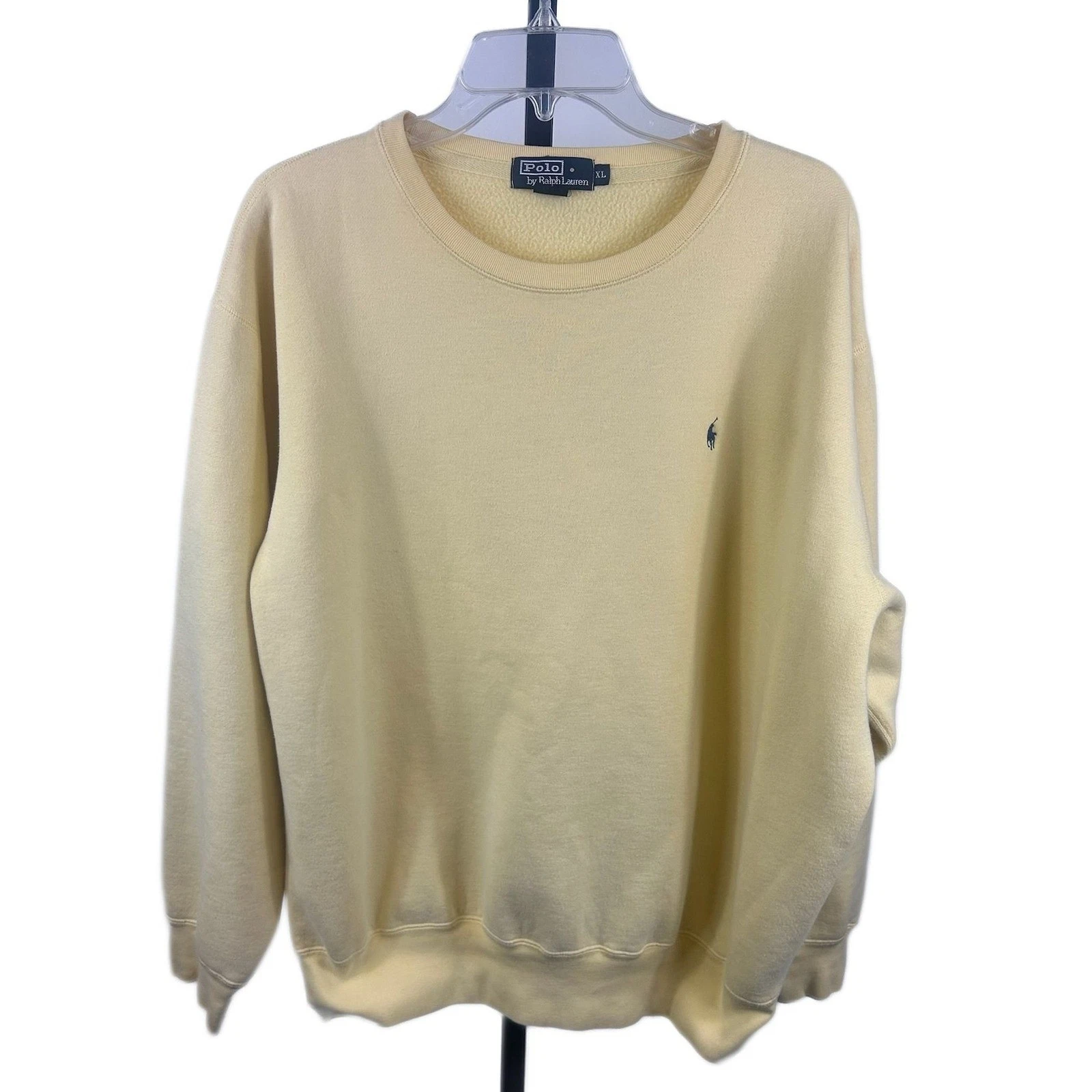 Polo Ralph Lauren crewneck sweatshirt in a soft yellow hue. This classic pullover features the iconic embroidered pony logo on the chest and a comfortable crew neckline. A versatile layering piece perfect for casual outings or relaxed weekends.