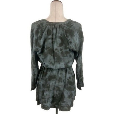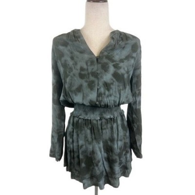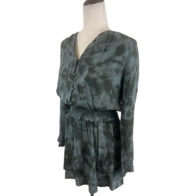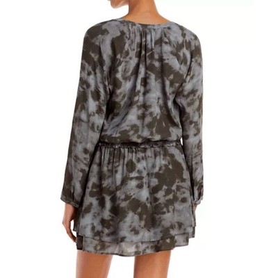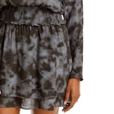 Keywords: Rails, Tie Dye Dress, Mini Dress, Long Sleeve Dress, Smocked Waist, V Neck Dress, Casual Dress, Bohemian Dress, Contemporary Fashion, Extra Small Dress, XS Dress, Gray Dress, Black Dress, Layered Dress
