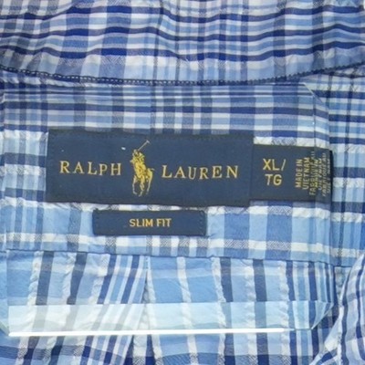 Excellent conditon, looks like new! Classic short sleeve button-down shirt features a crisp plaid pattern in various shades of blue and white. Crafted from breathable cotton, this slim-fit piece includes a button-down collar and the iconic pony logo embroidered on the chest. The lightweight fabric and timeless design make it a versatile staple for warm-weather styling or layering.