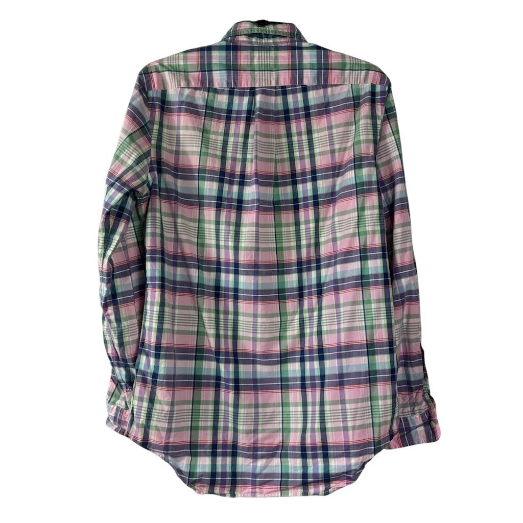 Excellent condition! This Ralph Lauren Small button down shirt measures 31 inches in length, has a 25 inch sleeve length and is 21 inches pit to pit laid flat. Features a classic button collar and the iconic embroidered Polo Player logo on the chest. Perfect for a casual day out or for layering.