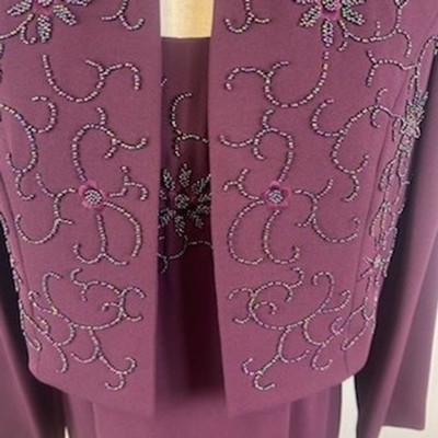 Keywords: dress suit set, formal dress, evening gown, beaded dress, purple dress, maxi dress, sleeveless dress, bolero jacket, special occasion dress, Rimini by Shaw, size 10, wedding guest dress, formal event, mother of the bride dress