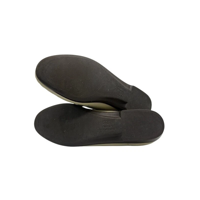 Like new!! Step into effortless elegance with these SAS loafers, a perfect blend of comfort and style. Imagine the soft, supple leather gently embracing your feet, providing all-day support and a luxurious feel. The classic beige hue exudes sophistication, while the silver-toned accents add a touch of refined charm. These loafers feature a timeless design, making them a versatile addition to your wardrobe. Picture yourself wearing them to a business casual meeting, a relaxed weekend brunch, or a sophisticated evening event. Experience the perfect combination of comfort and style with these exquisite SAS loafers. These are 9.5 Narrow Width
