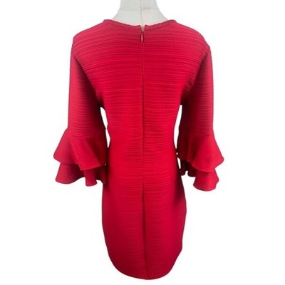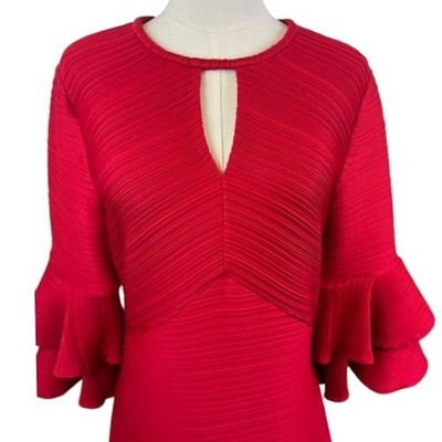 Shoshanna Red Dress Party Cocktail Bell Sleeve Keyhole Pleated Size 8