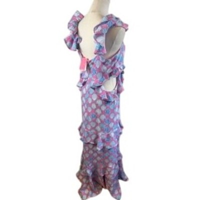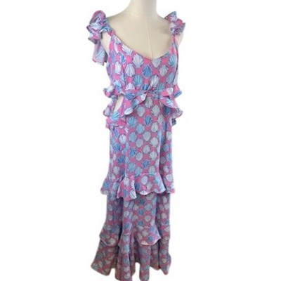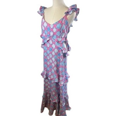 Simply Southern Maxi Dress Ruffle Sleeveless Pink Blue Seashells Size Large