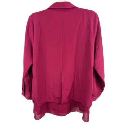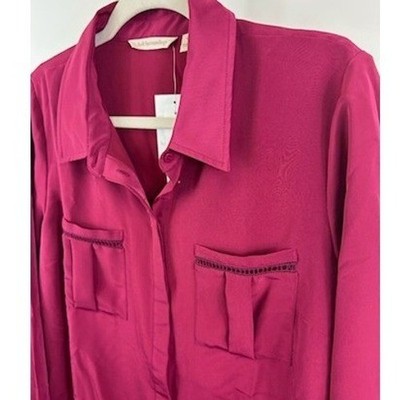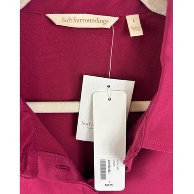 New with tags! This Soft Surroundings Sangria Button Up Shirt with embellished chest pockets measures 32″ in length, 29″ in sleeve length, and 21″ pit-to-pit when laid flat. This long sleeve top features a collared neckline and a layered hemline for a stylish silhouette. Perfect for a casual outing or a relaxed office or environment.