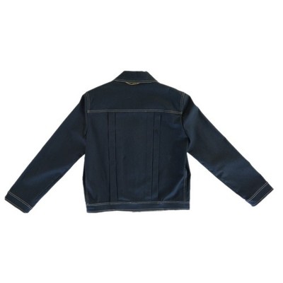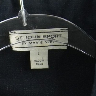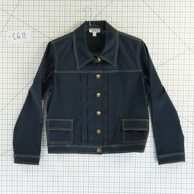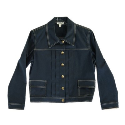 Excellent condition, looks like new! St. John Sport by Marie Gray dark indigo denim jacket offers a sophisticated take on a classic utility style. This structured piece features elegant gold-tone logo buttons and distinctive pleated detailing along the front placket and back. Contrast topstitching highlights the pointed collar, flap pockets, and cropped silhouette, creating a polished look suitable for both casual and elevated ensembles.