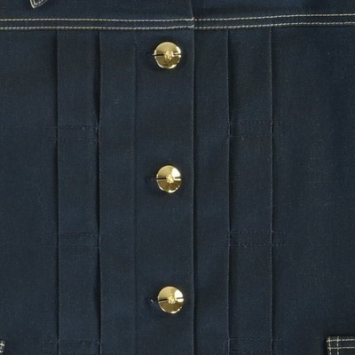 Keywords: Designer, Luxury, Utility, Minimalist, Classic, Preppy, Nautical, Sophisticated, Timeless, Versatile, Dark Wash, Indigo, Gold Hardware, Pleated Denim