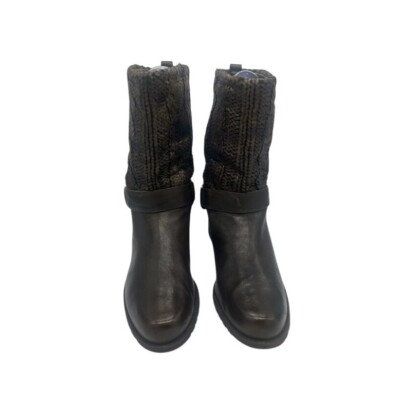Keywords: Stuart Weitzman, ankle boots, leather boots, knit cuff, brown boots, buckle boots, block heel, fall boots, winter boots, casual boots, designer boots, women's boots, size 7 M
