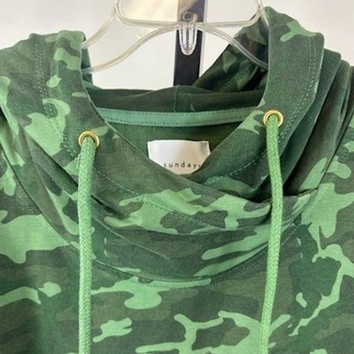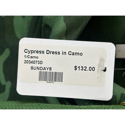 New with tags! Sundays Cypress Dress in a green camouflage print, 34 inches long. This sleeveless dress is a size 1 (small) and features a comfortable cowl neck hoodie with adjustable drawstrings and a relaxed fit. Perfect for casual outings or a relaxed weekend look.