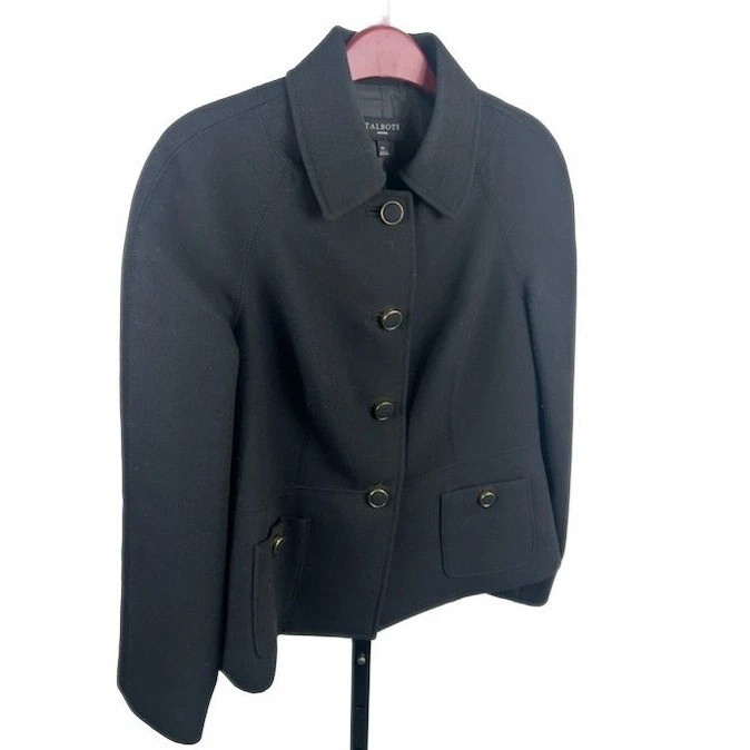Classic and versatile, this Talbots jacket is a timeless addition to any wardrobe. Featuring a flattering silhouette with a button-front closure and a smart collar, the jacket exudes sophistication. The subtle design details, including the perfectly placed pockets, enhance the overall aesthetic. An ideal choice for business meetings, elegant evening events, or adding a polished touch to everyday outfits.