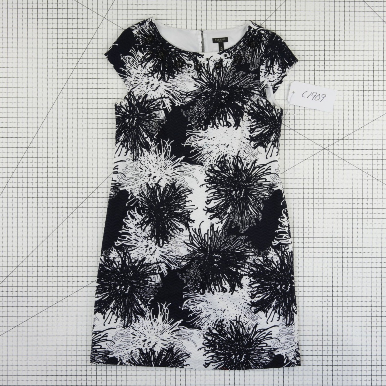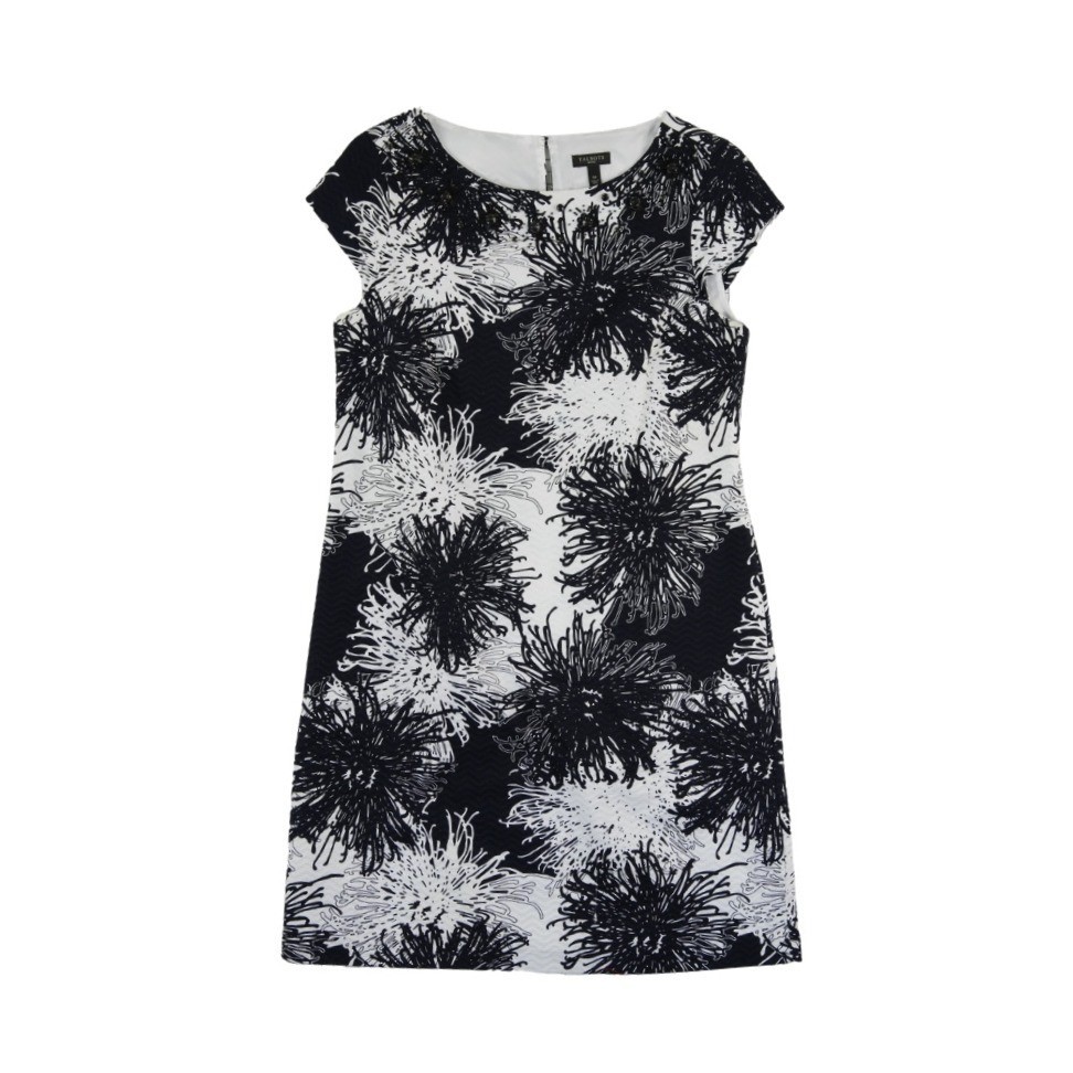 Keywords: Mod, Mid-Century, Classic, Preppy, Workwear, Cocktail, Wedding Guest, Monochrome, Textured, Petite, Timeless, Elegant, Floral Print, Embellished Neckline