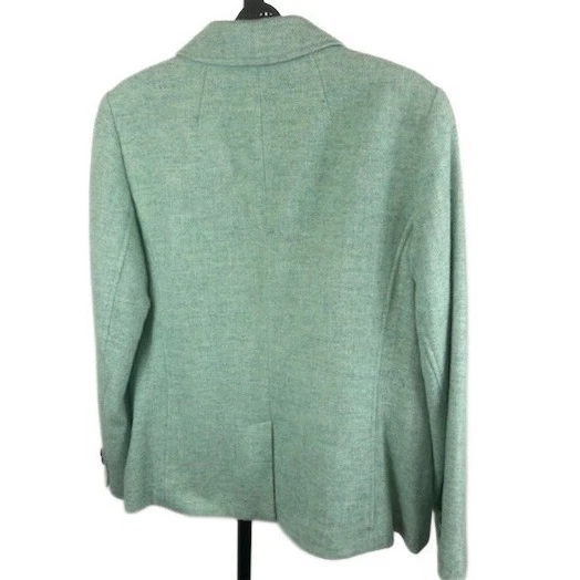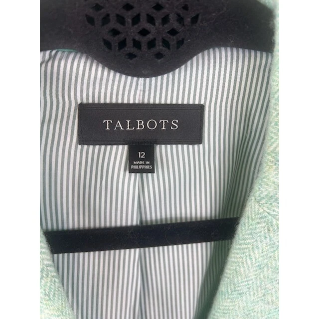 Sophisticated wool blend blazer from Talbots, perfect for adding a touch of professional polish to any outfit. Featuring a classic two-button closure, notched lapel, and flap pockets, this blazer offers a tailored silhouette. The front subtle texture of the fabric adds visual interest, while the fully lined interior ensures a comfortable fit. Ideal for a day at the office, a business meeting, or a smart casual weekend brunch.