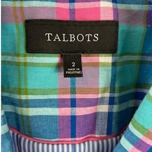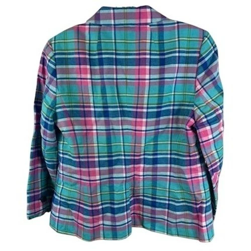 Talbots Women’s Plaid Blazer Size 2 Blue Pink Green Jacket Multicolor Y2K