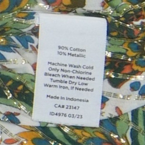 Material: 90% Cotton, 10% Metallic