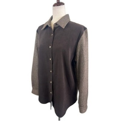 Keywords: Talbots, Wool Blend Shirt, Herringbone, Patchwork Shirt, Button Down Shirt, Brown Shirt, Size 14, Long Sleeve Shirt, Casual Shirt, Vintage Inspired, Elbow Patch, Workwear